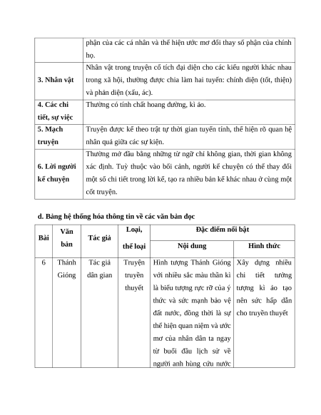 d. Bảng hệ thống hóa thông tin về các văn bản đọc Văn Loại,