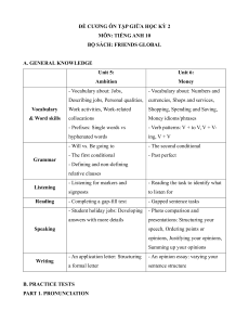Đề cương ôn tập Giữa kì 2 Tiếng Anh 10 Friends global
