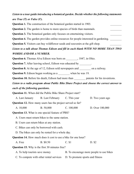 Listen to a talk about Thomas Edison and fill in each blank WITH NO MORE THAN TWO