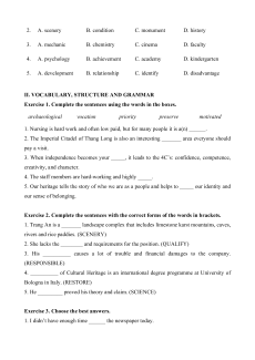 Themes: Preserving our heritage, Education options for school-leavers, Becoming independent II. PRONUNCIATION