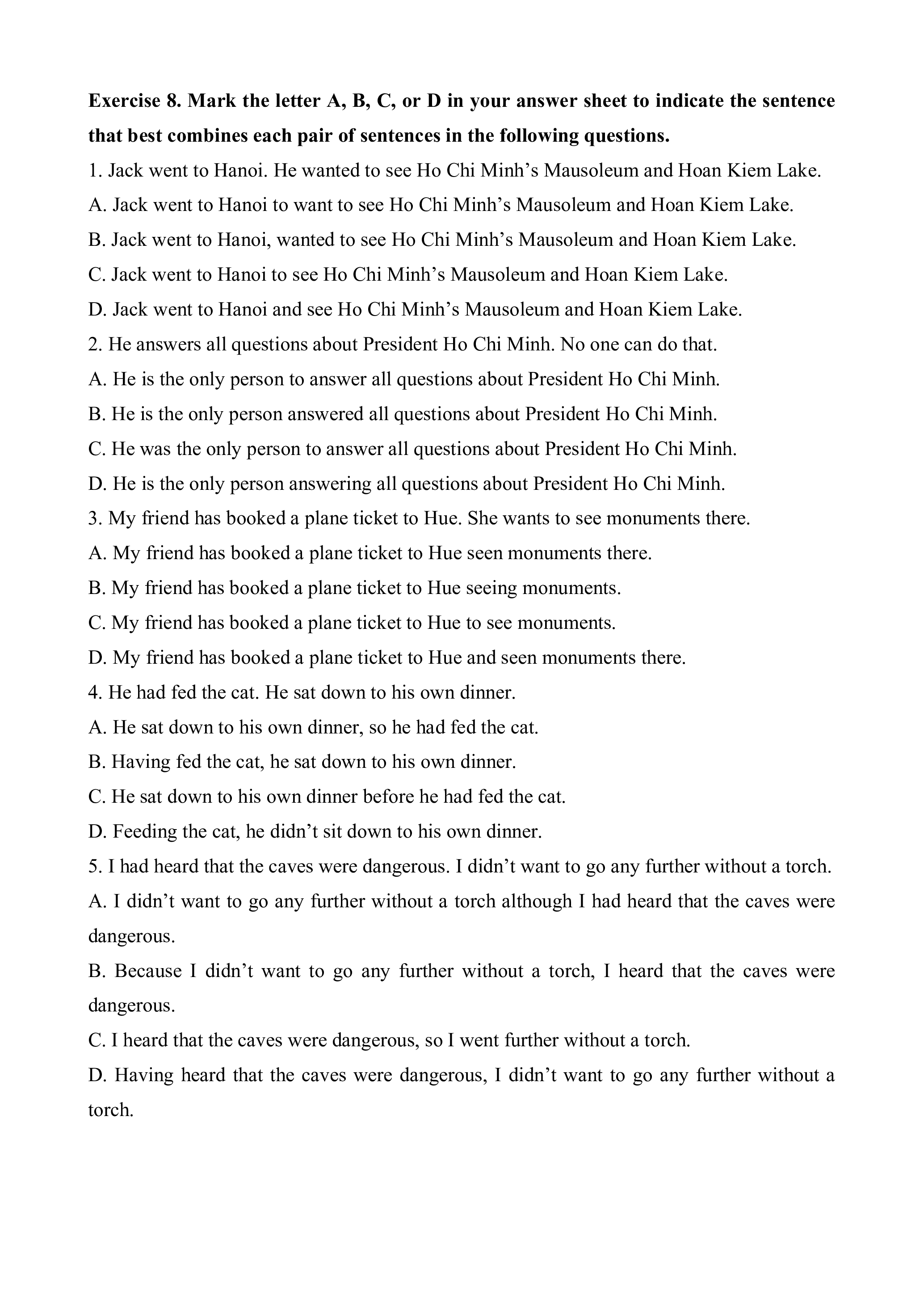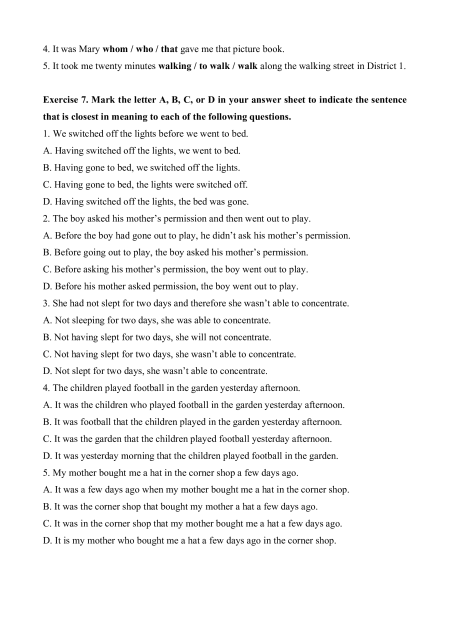 Exercise 7. Mark the letter A, B, C, or D in your answer sheet to indicate the sentence