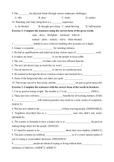 Exercise 2. Complete the sentences using the correct form of the given words.