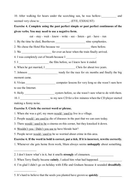 Exercise 4. Complete using the past perfect simple or past perfect continuous of the