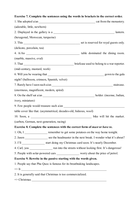 Exercise 7. Complete the sentences using the words in brackets in the correct order.