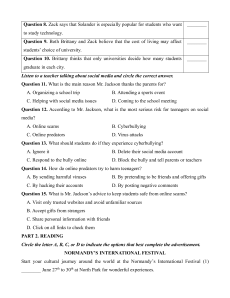 Question 12. According to Mr. Jackson, what is the most serious risk for teenagers on social media? A. Online scams B. Cyberbullying C. Online predators D. Virus attacks