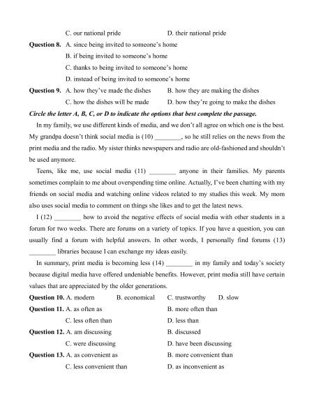 It’s impolite to decline food or criticize a meal’s quality (8) ________. Moreover, discussing