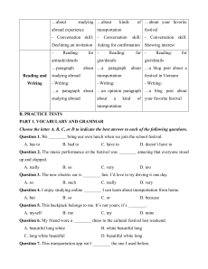 …a paragraph about …an opinion paragraph …a blog post about studying abroad about a kind of your favorite festival transportation B. PRACTICE TESTS