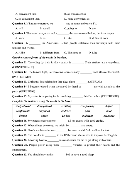 Question 7. This transportation app isn’t ________ the one I used before. A. convenient than B. as convenient as C. so convenient than D. more convenient as