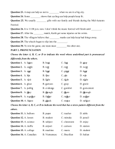 Question 30. To win the game, one team must ________ the other one. PART 2. PRONUNCIATION