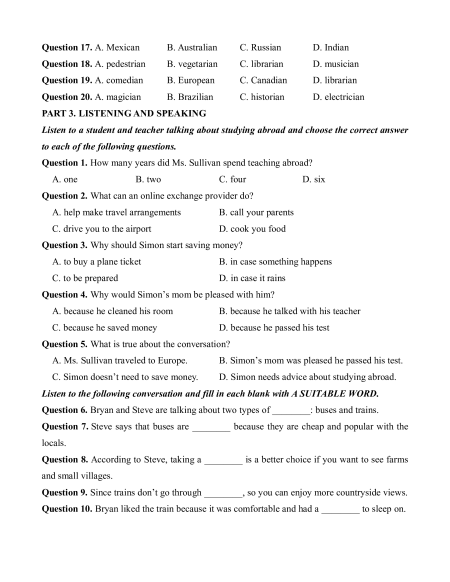 Listening and about studying abroad types of transportation about an interesting Speaking