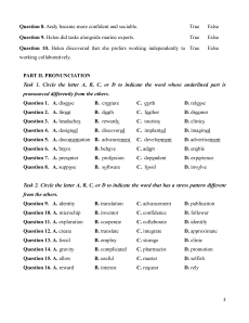 Question 10. Helen discovered that she prefers working independently to True False working collaboratively. PART II. PRONUNCIATION