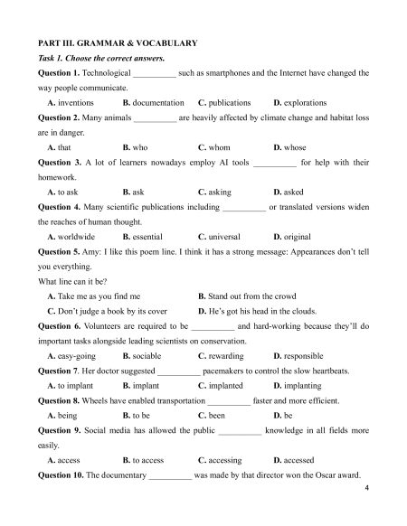 PART III. GRAMMAR & VOCABULARY