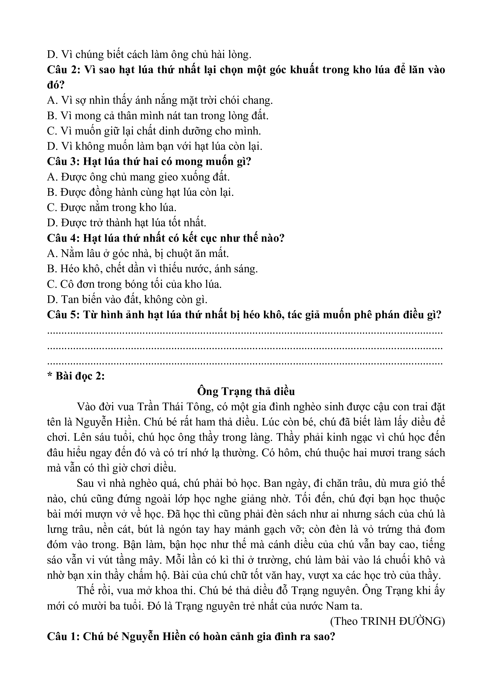 . . . . . . . . . . . . . . . . . . . . . . . . . . . . . . . . . . . . . . . . . . . . . . . . . . . . . . . . . . . . . . . . . . . . . 2. ĐỌC - HIỂU: * Bài đọc 1: