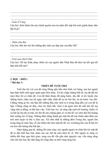 . . . . . . . . . . . . . . . . . . . . . . . . . . . . . . . . . . . . . . . . . . . . . . . . . . . . . . . . . . . . . . . . . . . . . 2. ĐỌC - HIỂU: * Bài đọc 1:
