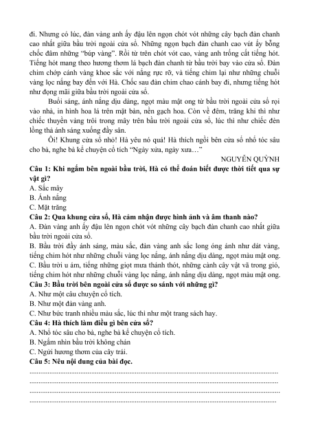 ĐỀ CƯƠNG ÔN TẬP GIỮA HỌC KÌ II – TIẾNG VIỆT 5 – CÁNH DIỀU