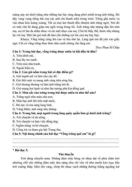 . . . . . . . . . . . . . . . . . . . . . . . . . . . . . . . . . . . . . . . . . . . . . . . . . . . . . . . . . . . . . . . . . . . . . * Bài đọc 2: Vầng trăng quê em