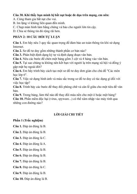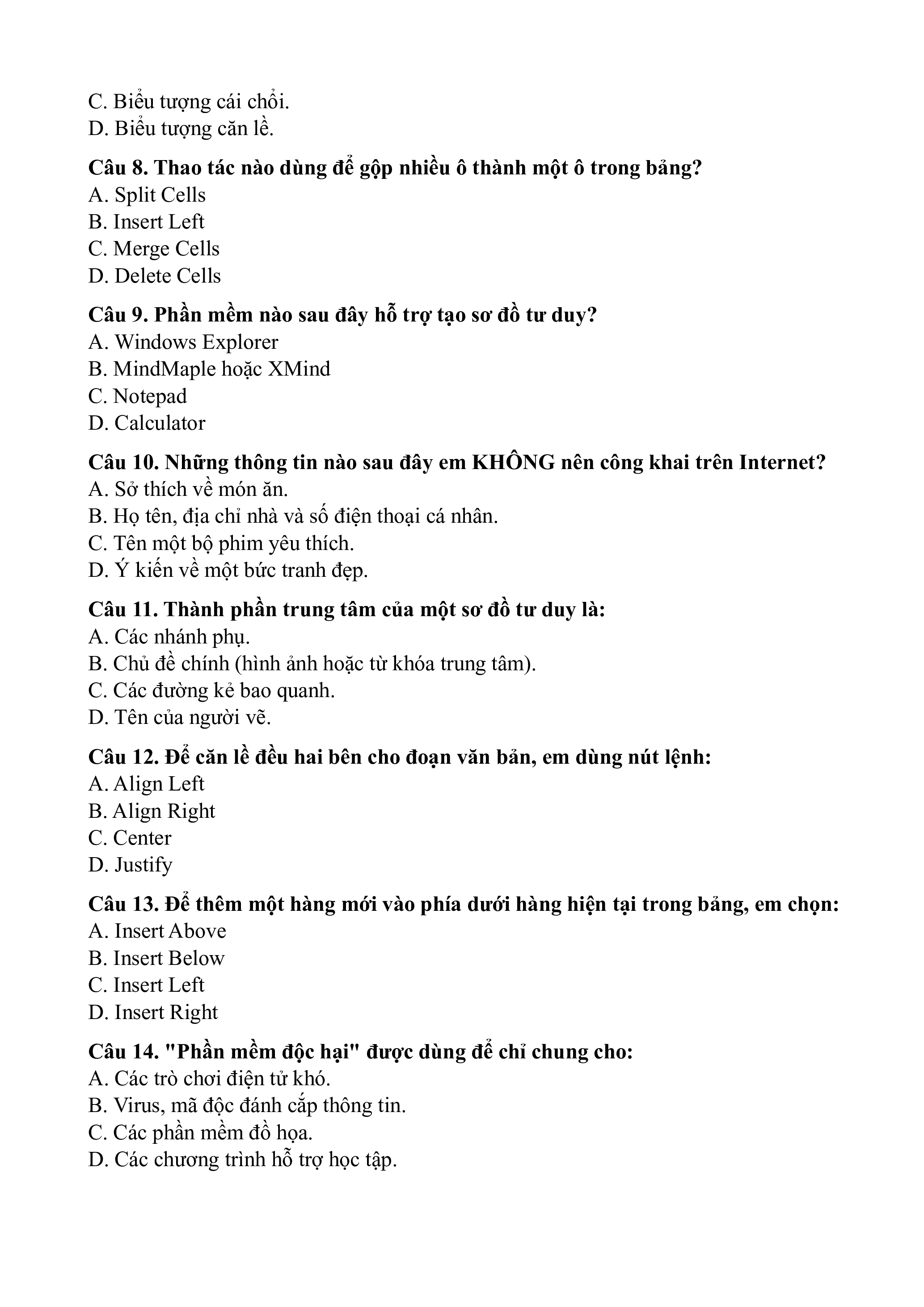 Câu 10. Những thông tin nào sau đây em KHÔNG nên công khai trên Internet? A. Sở thích về món ăn.