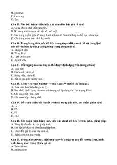 Câu 21. Trong PowerPoint, hiệu ứng chuyển động cho các đối tượng (text, hình