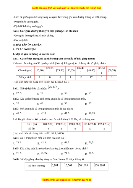 Bài 1. Giá trị đại diện của nhóm là A. B. C. D.