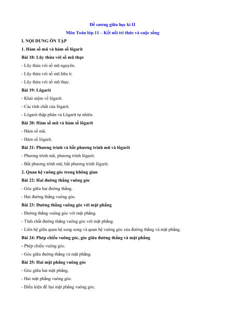 Môn Toán lớp 11 – Kết nối tri thức và cuộc sống I. NỘI DUNG ÔN TẬP