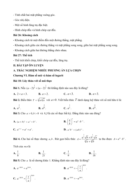 Bài 5. Cho a là số dương khác 1. Khẳng định nào sau đây là đúng? 2019 A. 2019 2019 a a . B. 2019 1 a . a 2019 C. 2019 1 a . D. 2019 2019 a a . a 3