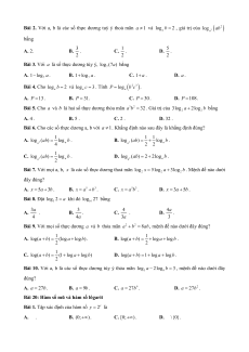 Bài 7. Cho số thực a 1 và các số thực , . Kết luận nào sau đây đúng?