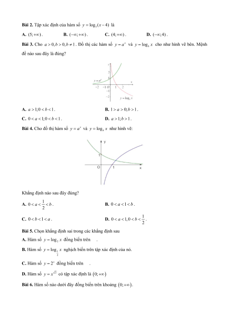 Bài 6. Cho các số thực dương a, b với a 1. Khẳng định nào sau đây là khẳng định đúng? A. 1