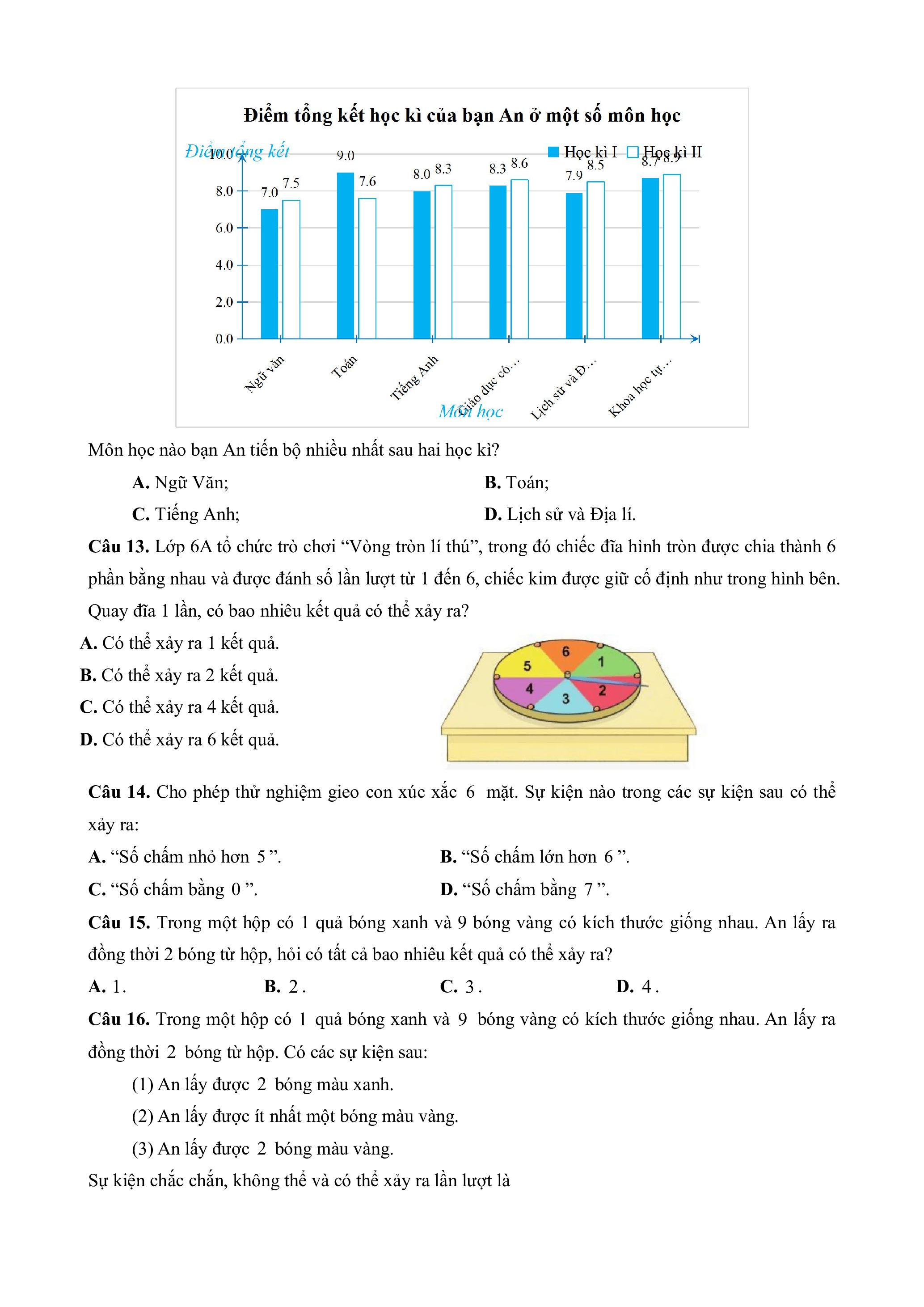 Câu 14. Cho phép thử nghiệm gieo con xúc xắc 6 mặt. Sự kiện nào trong các sự kiện sau có thể xảy ra: