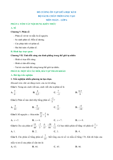 Đề cương ôn tập Giữa kì 2 Toán 6 Chân trời sáng tạo Cấu trúc mới