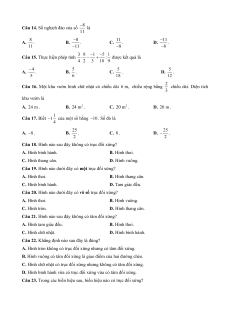 Câu 20. Hình nào dưới đây có vô số trục đối xứng? A. Hình thoi. B. Hình vuông. C. Hình tròn. D. Hình thang cân.
