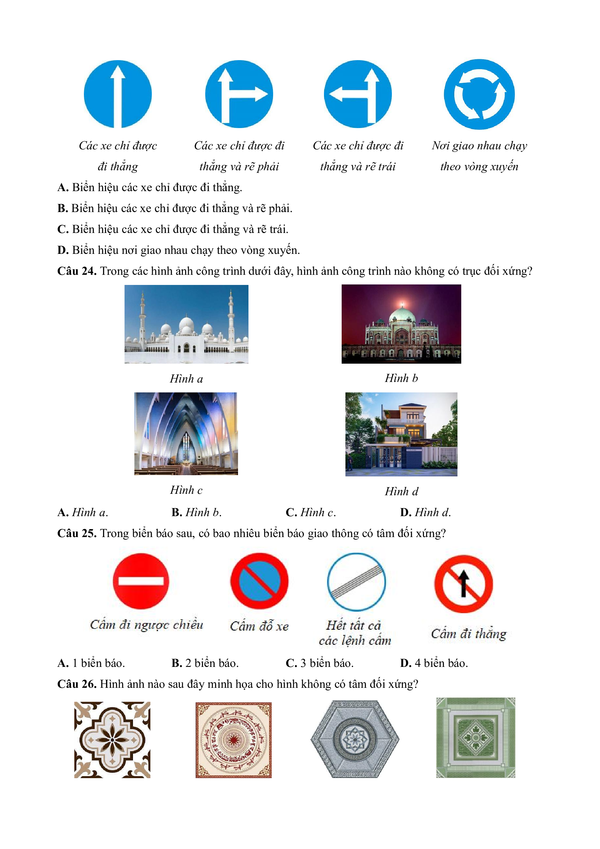 Câu 25. Trong biển báo sau, có bao nhiêu biển báo giao thông có tâm đối xứng? A. 1 biển báo. B. 2 biển báo. C. 3 biển báo. D. 4 biển báo.