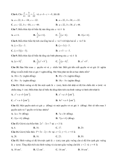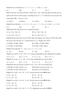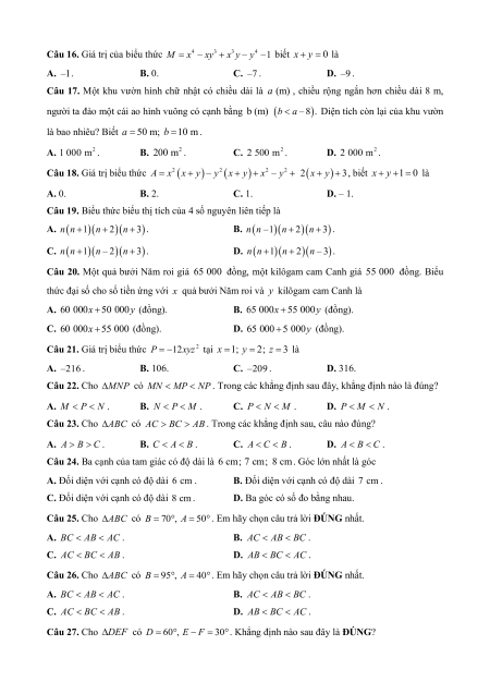 Câu 14. Giá trị biểu thức P 3x – 2y 4z tại x 2; y 1; z 4 là A. 20. B. 16. C. 23. D. 30.