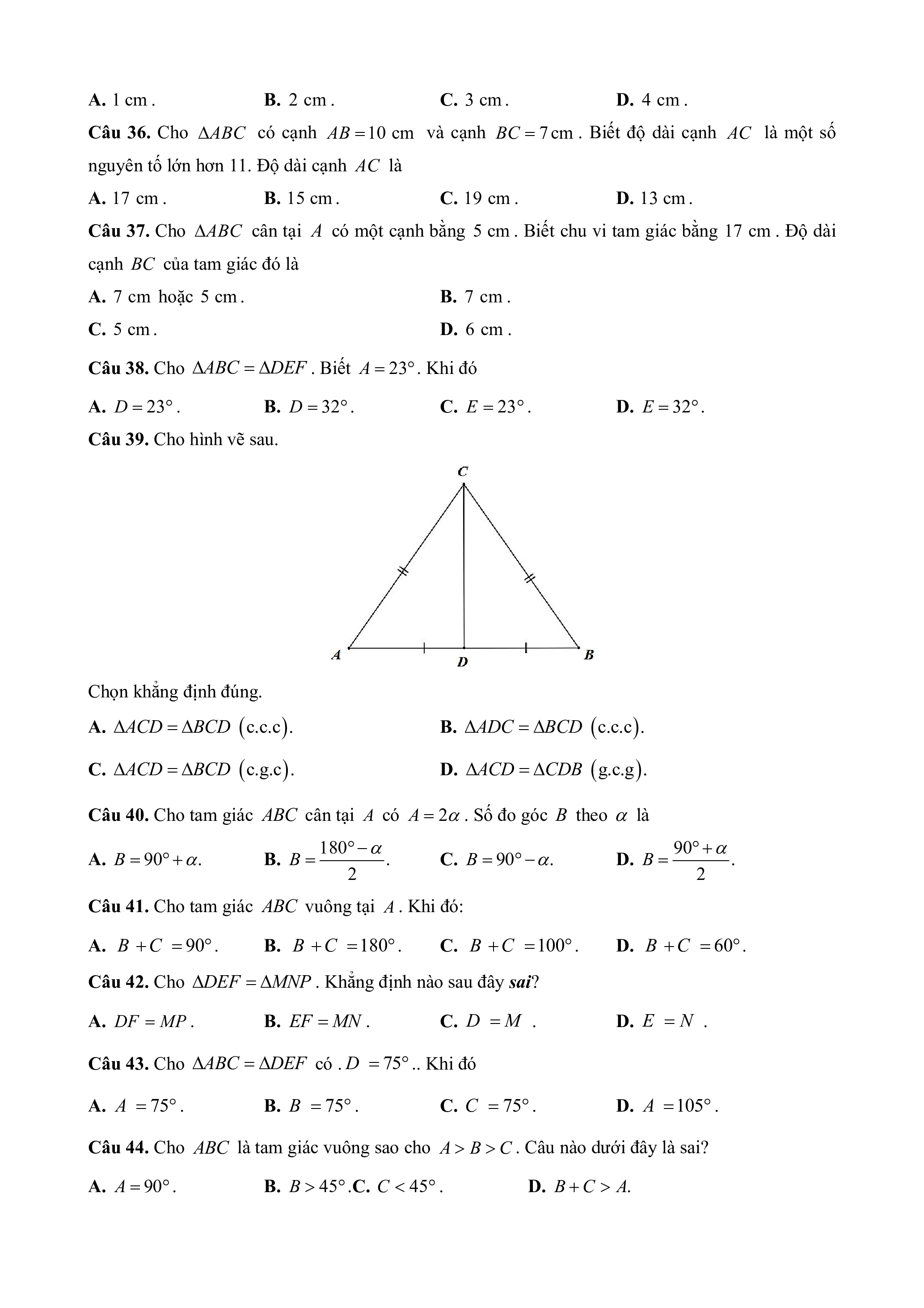 2. Các trường hợp bằng nhau của tam giác. 3. Tam giác cân.