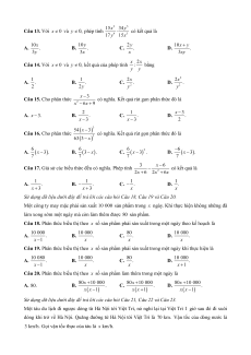 Câu 11. Với x 0 và y 0, mẫu chung của hai phân thức 1 và 1 là 2 x y 2xy A. 2 2x . y B. 2 x y 2xy. C. 2 2 2x y . D. 2 x y 2xy. Câu 12. Với