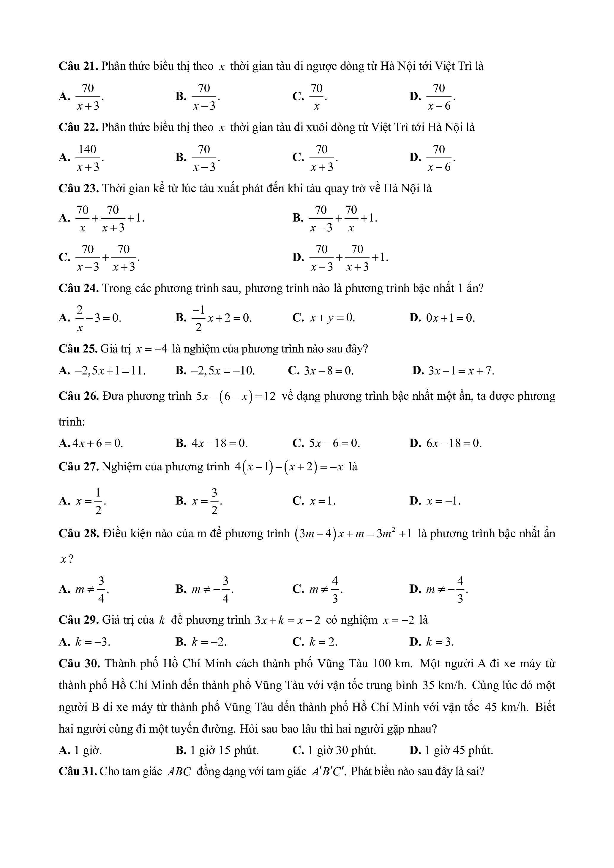 Câu 23. Thời gian kể từ lúc tàu xuất phát đến khi tàu quay trở về Hà Nội là A. 70 70 1. B. 70 70 1. x x 3 x 3 x C. 70 70 . D. 70 70 1. x 3 x 3 x 3 x 3