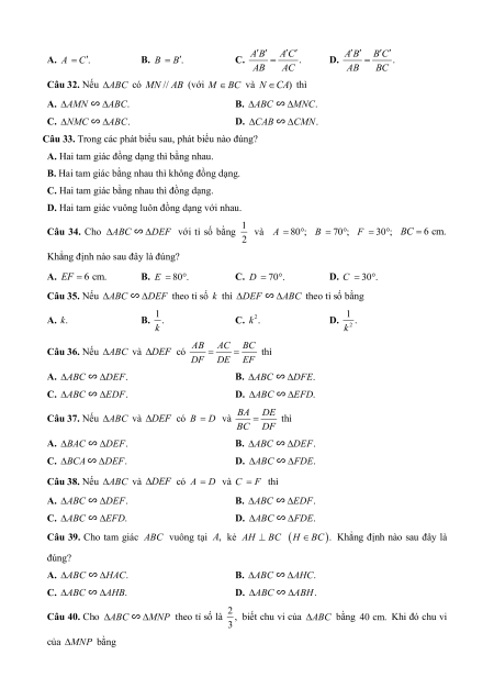 Câu 31. Cho tam giác ABC đồng dạng với tam giác AB C