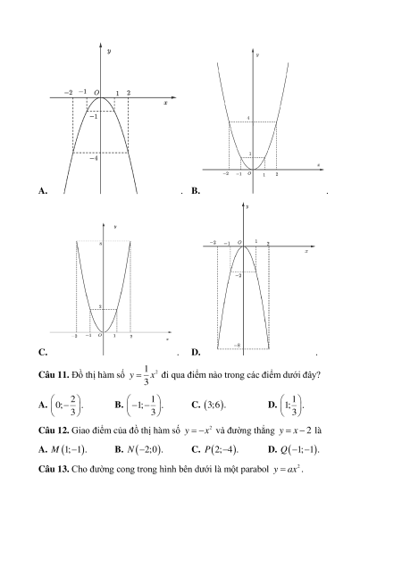Câu 10. Hình nào dưới đây là đồ thị của hàm số 2 y 2 x ? A. . B. . C. . D. . 1