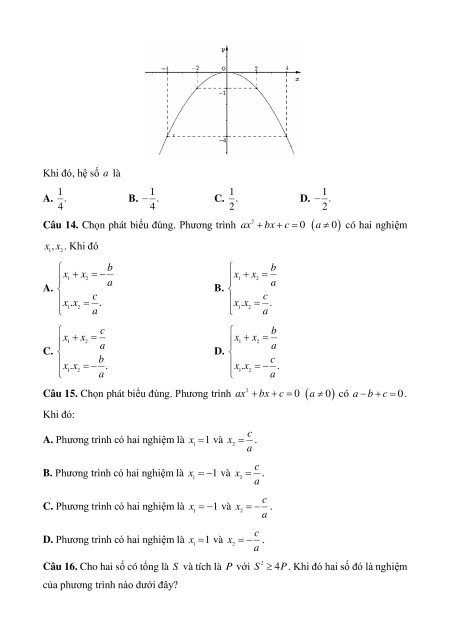 x , x . Khi đó 1 2 b b x x x x 1 2 a 1 2 a A. B. c c x .x . x .x . 1 2 a 1 2 a c b x x x x 1 2 a 1 2 a C. D. b c x .x .