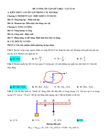 ĐỀ CƯƠNG ÔN TẬP GIỮA HK2 - VẬT LÍ 10