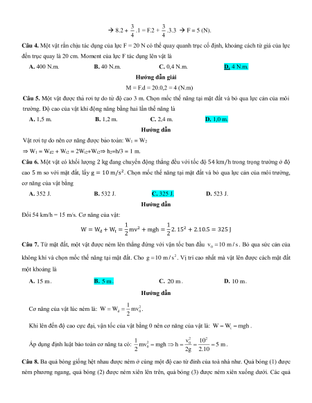 cao 5 m so với mặt đất, lấy g = 10 m/s2. Chọn mốc thế năng tại mặt đất và bỏ qua lực cản của môi trường, cơ năng của vật bằng A. 352 J. B. 532 J. C. 325 J. D. 523 J. Hướng dẫn