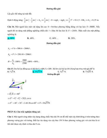 .Nếu vật di chuyển quãng đường 2m trong thời gian 4s thì công suất của lực là A. 5 W. B. 5 3 W. C. 2 W . D. 2 3W . Hướng dẫn giải 0 A F. .c s os 202