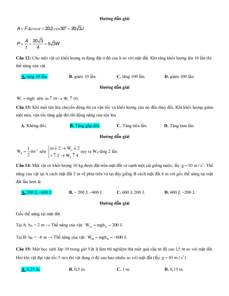 Câu 12: Cho một vật có khối lượng m đang đặt ở độ cao h so với mặt đất. Khi tăng khối lượng lên 10 lần thì