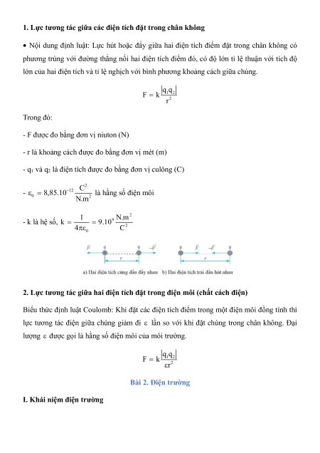 1. Lực tương tác giữa các điện tích đặt trong chân không