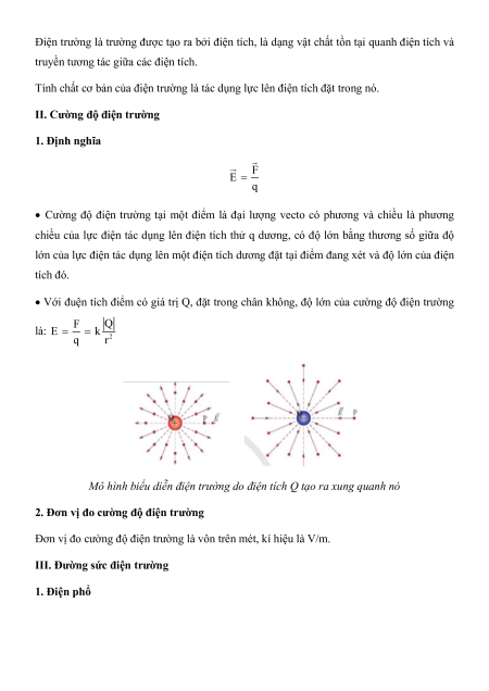 Điện trường là trường được tạo ra bởi điện tích, là dạng vật chất tồn tại quanh điện tích và