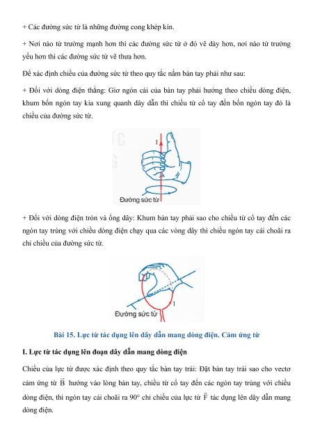 khum bốn ngón tay kia xung quanh dây dẫn thì chiều từ cổ tay đến bốn ngón tay đó là
