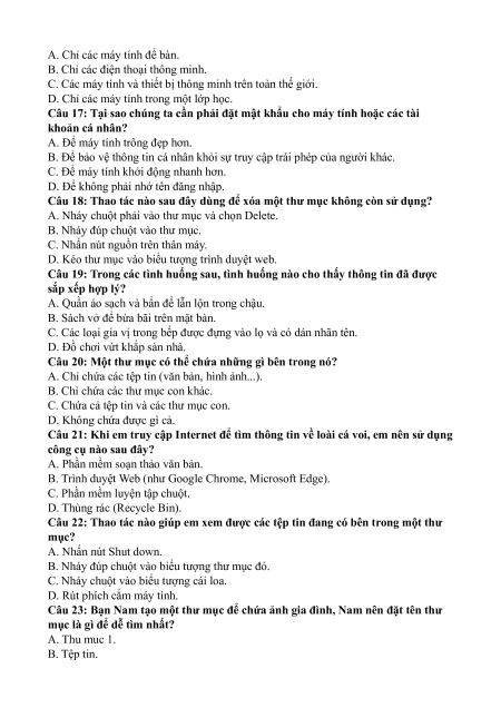 Câu 17: Tại sao chúng ta cần phải đặt mật khẩu cho máy tính hoặc các tài khoản cá nhân?