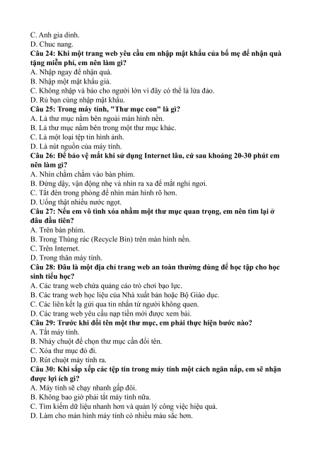 Câu 30: Khi sắp xếp các tệp tin trong máy tính một cách ngăn nắp, em sẽ nhận