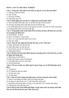 PHẦN 1: 40 CÂU HỎI TRẮC NGHIỆM