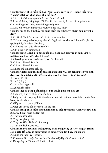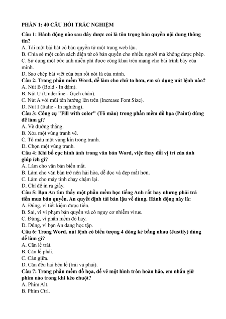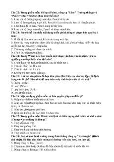 Câu 3: Công cụ "Fil with color" (Tô màu) trong phần mềm đồ họa (Paint) dùng để làm gì? A. Vẽ đường thẳng.