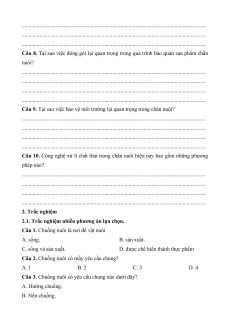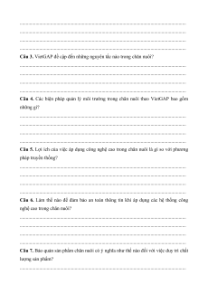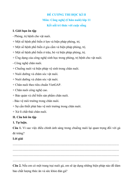 + Xử lí chất thải chăn nuôi. II. Câu hỏi ôn tập 1. Tự luận.